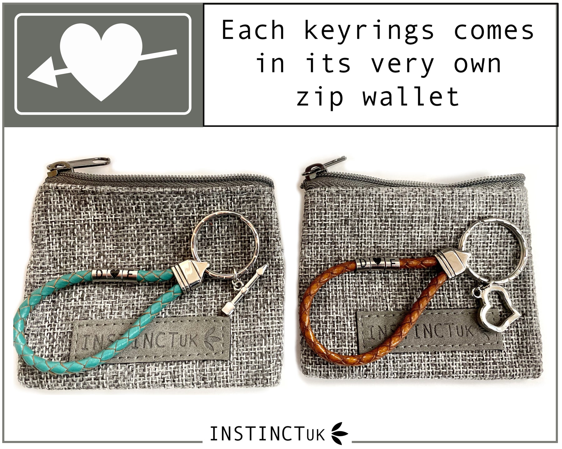 Available in 16 colour options! - Please choose from the menu which colour you would like for both the arrow keyring and the heart keyring.